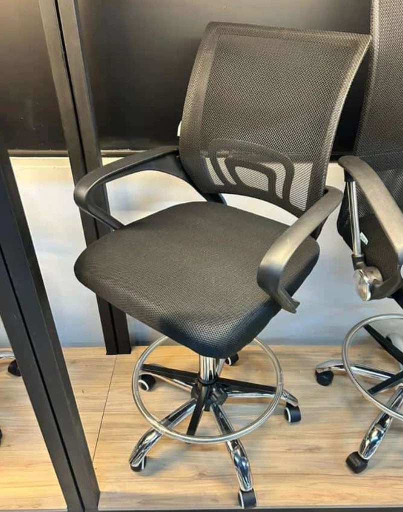 The Ergonomic Mesh Cashier Chair is designed for comfort, support, and long hours of sitting, making it ideal for cashiers, tellers, and other professionals who need reliable seating. It features a breathable mesh backrest that promotes airflow and a cushioned seat for all-day comfort. The chair is equipped with an adjustable height function and a sturdy footrest, providing ergonomic support and reducing fatigue. The five-star chrome base ensures stability, while the swivel and wheel functionality allows for easy mobility around the workspace.