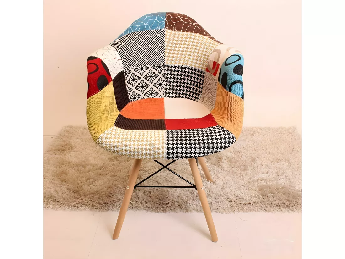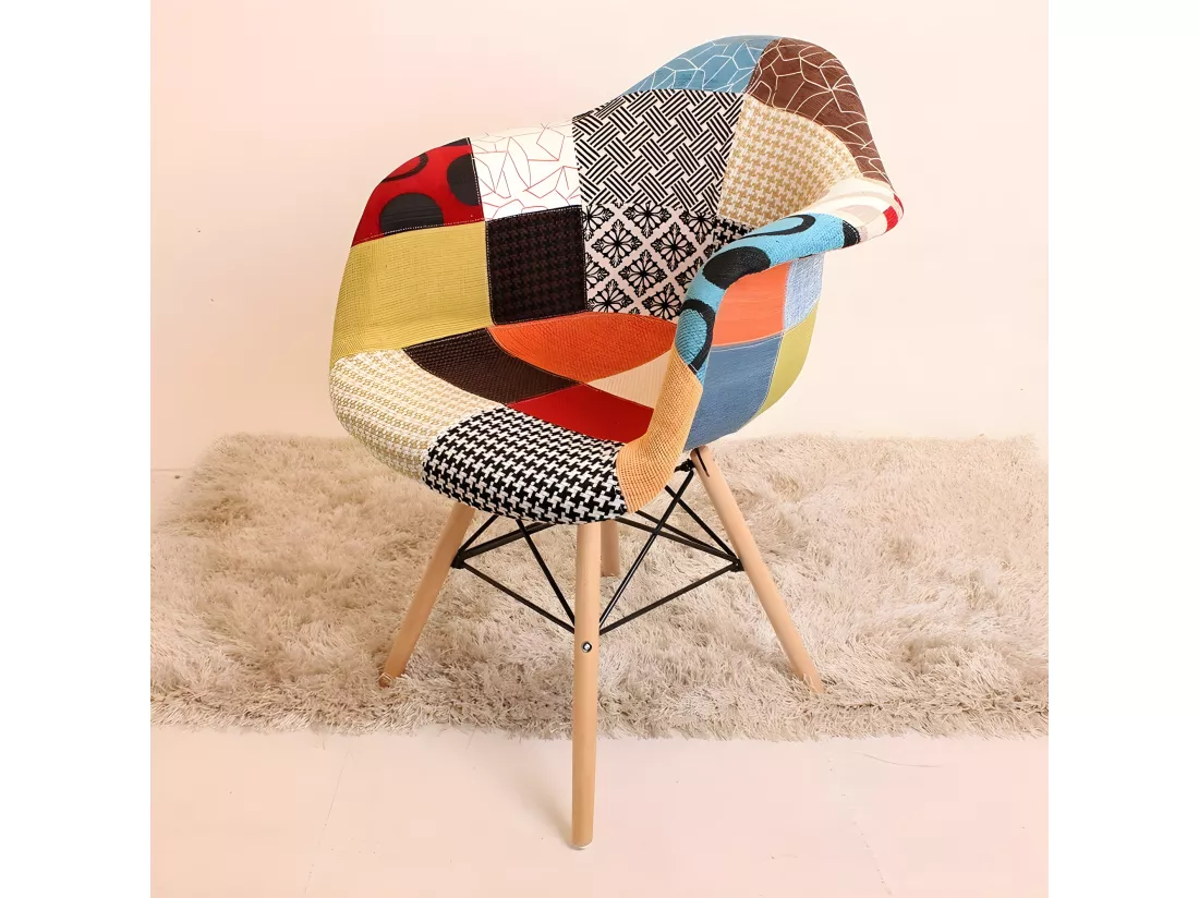 Moda Patchwork Tub Eames Armchair is a stylish and functional chair that combines classic and modern design. Inspired by the Eames style, it features a curved seat for great comfort and support. The colorful patchwork upholstery gives the chair a unique look, making it a standout piece in any room.