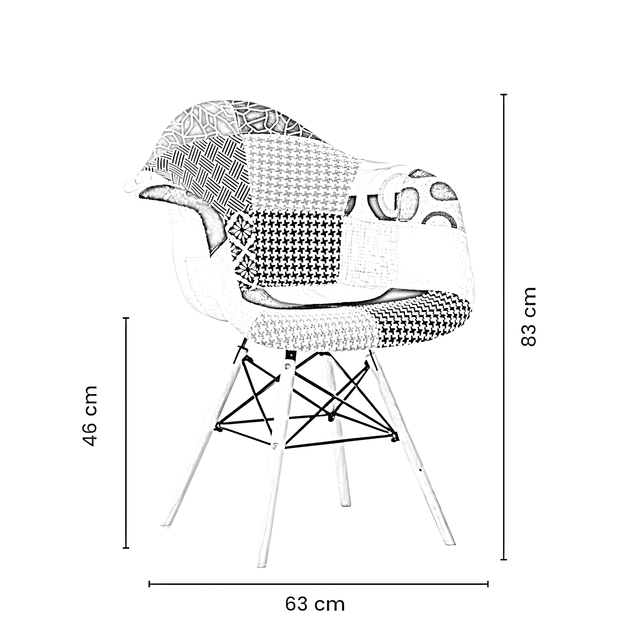 Moda Patchwork Tub Eames Armchair combines retro design with modern comfort. Its iconic Eames-inspired frame features a curved tub seat, providing excellent support and comfort for daily use. The patchwork upholstery adds a unique and vibrant touch, blending various fabric patterns and colors for a striking visual appeal. Supported by sturdy wooden legs and metal accents, this chair is not only stylish but durable, perfect for living rooms, bedrooms, or office spaces.